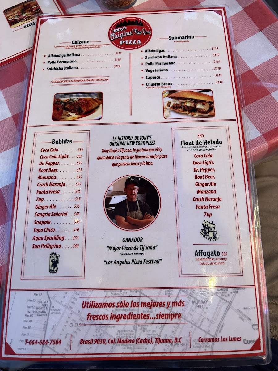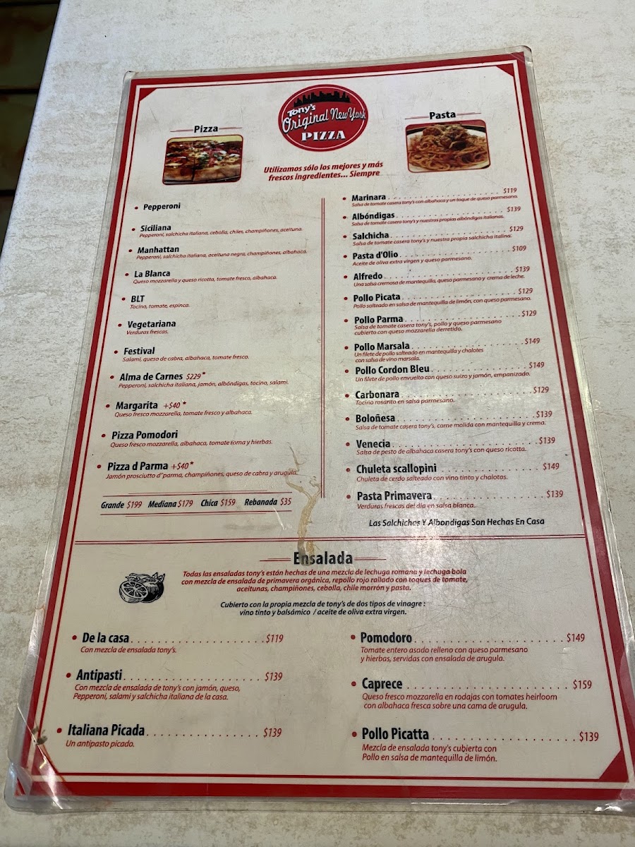 Welcome to Tony's Pizza - 22040 Tijuana, where flavor meets tradition in the heart of Tijuana! Nestled at Brasil 9030 in Col. Madero, this cozy pizzeria is quickly becoming a local favorite. Their menu shines with highlights like the Pizza Margarita, a delightful blend of fresh mozzarella, basil, and tomato for just MX$199.00, and the meat-lovers dream, Pizza Alma De Carnes, featuring pepperoni, Italian sausage, ham, meatballs, bacon, and salami at MX$299.00.